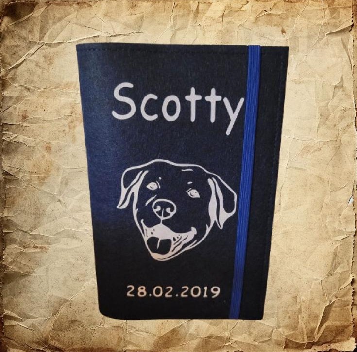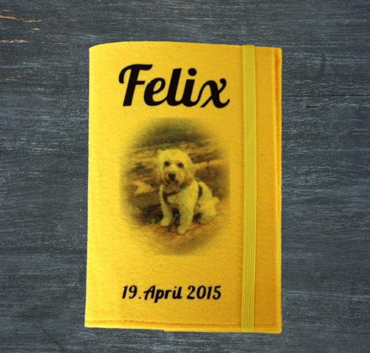 Hier könnt ihr den EU-Heimtierauweis eures Lieblings in eine schöne Filzhülle packen. Die Hüllen können auch mit einem Bild versehen werden. Schreibt mir gerne, welche Farbe ihr gerne hättet!