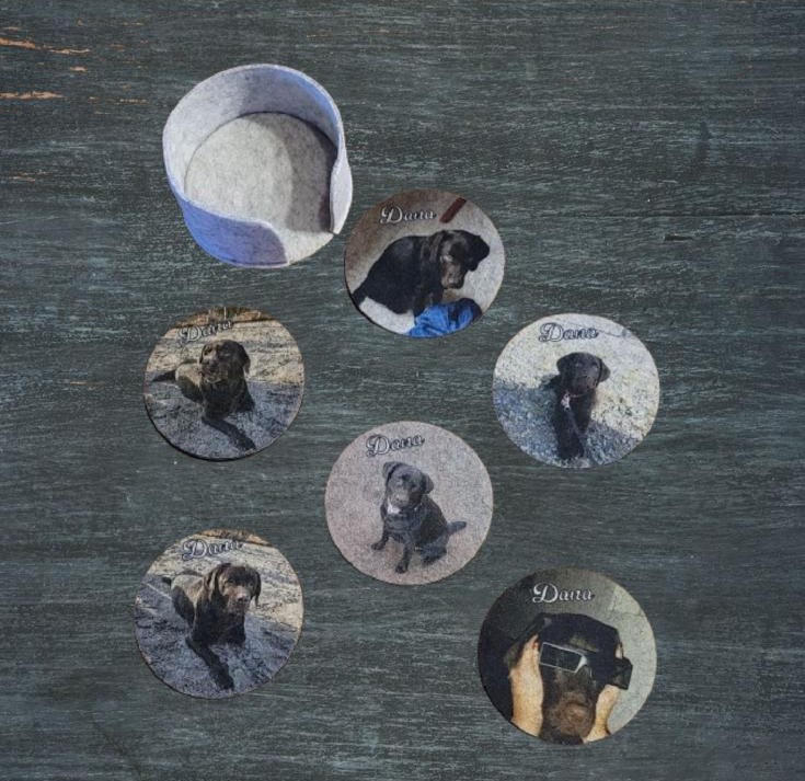 Hier gibt es individuell gestaltete Filz-Untersetzer und Sitzkissen. Sie können entweder mit einem Bild oder aber mit einem Spruch verschönert werden.